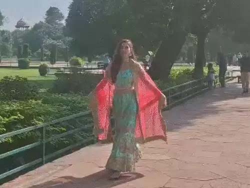 इसाबेला गर्मी से परेशान दिखीं। धूप से परेशान इसाबेला बार-बार अपने चेहरे को हाथ से ढकती रही। ताजमहल के रॉयल गेट से लेकर मुख्य गुंबद तक हर एंगल में उन्होंने फोटो खिंचवाए। सेल्फी भी ली। वह हरे रंग का लहंगा और लाल दुपट्?टे पहने थीं। इसाबेसा ने ज्वेलरी भी पहनी थी।