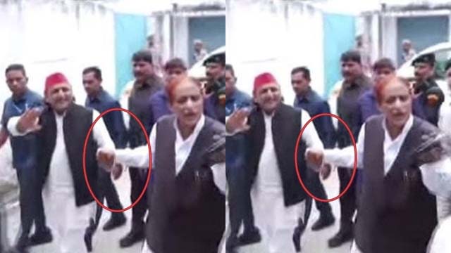 अखिलेश और आजम खां एक-दूसरे के हाथ पकड़कर चले साथ