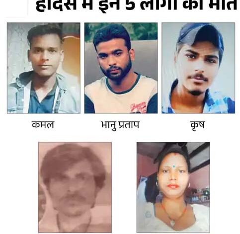 लोगों का कहना है कि अंशुल नशे में था। गनीमत रही कि कार पलटने पर एयरबैग खुल गए, जिससे उसे चोट नहीं आई। हादसे में मृतक की पहचान कमल, भानु प्रताप, कृष, बंटेश और बबली के रूप में हुई।