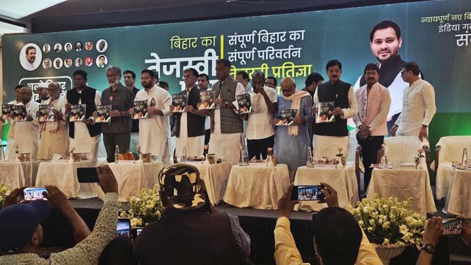 पटना । आगामी विधानसभाा चुनाव को लेकर महागठबंधन (इंडिया गठबंधन) ने अपना घोषणा पत्र जारी कर दिया है। महागठबंधन के मुख्यमंत्री चेहरा घोषित हुए तेजस्वी यादव ने सभी घटक दलों के प्रमुख नेताओं के साथ इसे जारी किया। इसे ‘तेजस्वी का प्रण पत्र’ भी कहा गया है। तेजस्वी यादव ने कहा कि हमलोगों के लिए खास दिन है। हमलोगों को बिहार को बनाने का काम करना है। हमलोगों ने आपके सामने संकल्प पत्र रखा है। हमलोगों का प्रण है कि बिहार को नंबर वन कैसे बनाएं। यह दलों और दिलों का प्रण पत्र है। अगर हमें अपने प्राण देकर भी इसे पूरा करना पड़े तो इसे पूरा करेंगे। जब भी कोई बिहारी कुछ ठान लेता है तो इसे पूरा करता है।