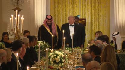 ट्रंप इस समय सऊदी अरब के क्राउन प्रिंस का स्वागत कर रहे हैं, जो अपनी वैश्विक छवि सुधारने और वाशिंगटन के साथ संबंध मजबूत करने की कोशिश कर रहे हैं। रात्रिभोज में पुर्तगाल के फुटबॉल स्टार क्रिस्टियानो रोनाल्डो और एनवीडिया के मुख्य कार्यकारी अधिकारी जेनसन हुआंग भी मौजूद थे।