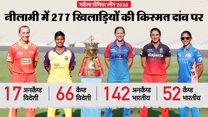 वनडे विश्व कप जीत के बाद भारतीय खिलाड़ियों की भारी मांग होगी। टूनार्मेंट की प्लेयर आॅफ द टूनार्मेंट दीप्ति शर्मा पर अच्छी बोली लगने की संभावना है। उन्हें विश्व कप फाइनल के तुरंत बाद यूपी वॉरियर्स ने रिलीज कर दिया था। अगर क्रांति और चरणी जैसी युवा खिलाड़ी धनराशि के मामले में दीप्ति की बराबरी कर लें तो किसी को हैरानी नहीं होनी चाहिए। इन दोनों ने विश्व कप में शानदार प्रदर्शन करके प्रभावित किया था। हरलीन देओल, रेणुका सिंह और स्नेह राणा भी नीलामी का हिस्सा हैं।