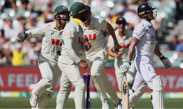 आॅस्ट्रेलिया को दूसरी पारी में आॅलआउट करने के बाद लक्ष्य का पीछा करने उतरी इंग्लैंड की शुरूआत अच्छी नहीं रही। आॅस्ट्रेलिया के कप्तान पैट कमिंस ने सलामी बल्लेबाज बेन डकेट को अपना शिकार बनाया। कमिंस ने लाबुशेन के हाथों डकेट को कैच कराया जो चार रन बनाकर आउट हुए। इसके बाद जैक क्राउली ने ओली पोप के साथ पारी आगे बढ़ाई, लेकिन कमिंस ने इंग्लैंड को एक और झटका दे दिया। कमिंस ने लाबुशेन के ही हाथों पोप को कैच कराया। पोप 29 गेंदों पर दो चौकों की मदद से 17 रन बनाकर आउट हुए।